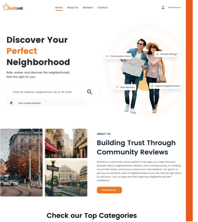 Real estate platform based on neighborhood, district, and city ratings, ensuring homebuyers make informed decisions.